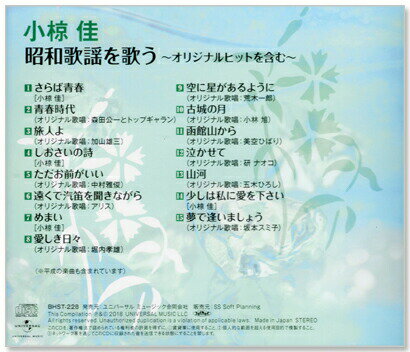 情感あふれる昭和の名曲を収録した聴きごたえたっぷりの名曲集! 1. さらば青春 [小椋佳] 2. 青春時代 (森田公一とトップギャラン) 3. 旅人よ (加山雄三) 4. しおさいの詩 [小椋佳] 5. ただお前がいい(中村雅俊) 6. 遠くで汽笛を聞きながら (アリス) 7. めまい [小椋佳] 8. 愛しき日々 (堀内孝雄) 9. 空に星があるように (荒木一郎) 10. 古城の月 (小林 旭) 11. 函館山から (美空ひばり) 12. 泣かせて (研ナオコ) 13. 山河 (五木ひろし) 14. 少しは私に愛を下さい [小椋佳] 15. 夢で逢いましょう (坂本スミ子) ※(カッコ)内はオリジナル歌唱 歌詞カード付 発売元:ユニバーサルミュージック 収録時間:56:41秒 発売日:2018/9/5 JAN:4988011902994 品番:BHST-228 定価:1600円+税